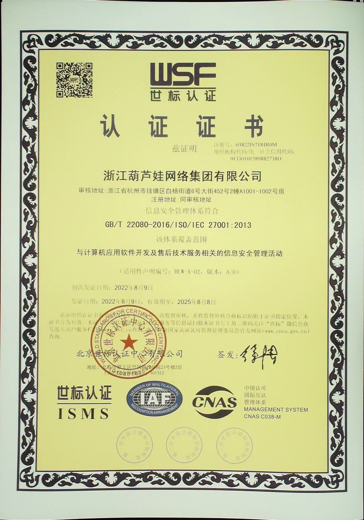 浙江葫蘆娃網(wǎng)絡(luò)集團(tuán)有限公司(簡稱:葫蘆娃集團(tuán))成立于2011年,創(chuàng)辦于中國杭州,是中國互聯(lián)網(wǎng)成長型企業(yè)20強(qiáng)、國家級高新技術(shù)企業(yè)、專精特新企業(yè)、浙江省“守合同重信用”企業(yè)、杭州市重大科技創(chuàng)新項(xiàng)目立項(xiàng)企業(yè)。